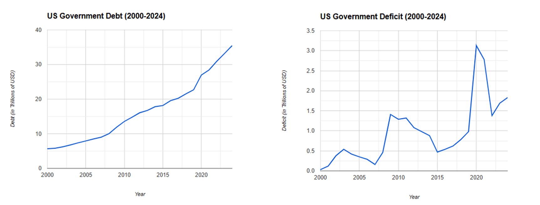 Source: Charts created by Gemini using data from US Treasury Department, Congressional Budget Office, Federal Reserve, Office of Management and Budget